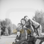 Het was een ferme zonnige zondag, de dag van onze afspraak om het ganse gezin van Evy en Bjorn uit Temse op de gevoelige digitale plaat vast te leggen, inclusief het jonge- en grootoudergeweld :-p. Een vrij lage middagzon is typisch hetgeen een fotograaf als het kan wil vermijden, maar dan zou het ook weer geen uitdaging meer zijn als alle dagen licht bewolkt zouden zijn :-p Vandaar dat yours-truly een resem extra fotomateriaal meegebracht had, van méga reflectoren tot grotere flitsers (je weet wel, het materiaal waarmee ze ook wel modeshoots en superproffessionele fotoreportages mee doen)... Pal in het midden van een landschap waar geen enkele bruikbare schaduw te bespeuren was hebben we allen het gevecht tegen de zon gewonnen (jawel: amper gesloten oogjes ondanks het felle licht en een hele hoop glimlachen en glinsteringen in de ogen, net zoals het hoort). Ik denk dat het resultaat prima is, gelet de licht(e)handicap en het is een leuke belevenis geworden voor het ganse gezin.